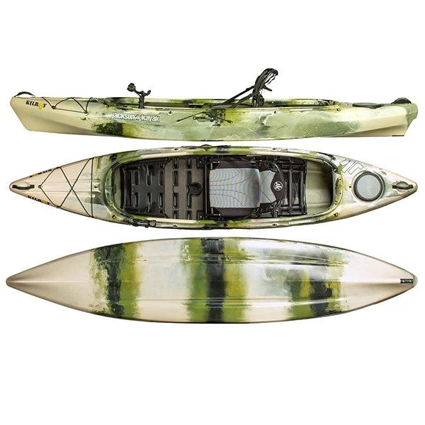 Our original and much-loved sit-inside kayak design incorporates several classic Jackson fishing features found throughout our sit-on-top kayaks. Updated for 2022 with our new EZ Hi-Low Sliding seating system and all the original features you loved. Enormous amounts of protected storage for fishing and hunting gear, protected rod storage in tubes along the sidewalls, and strategically located accessory mounting locations on tons of gear track. The Kilroy OG is super stable as the standing area is actually below the waterline, thus creating a very stable platform.