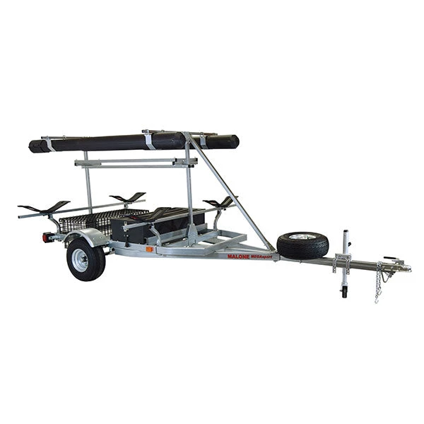 The MPG550-AU Saddle Up Pro MegaSport trailer package is bundled with SaddleUp carriers, spare tire kit, sliding storage drawer, 2nd tier load bars, wet gear basket, two sets of rod storage tubes and milk crate cage.