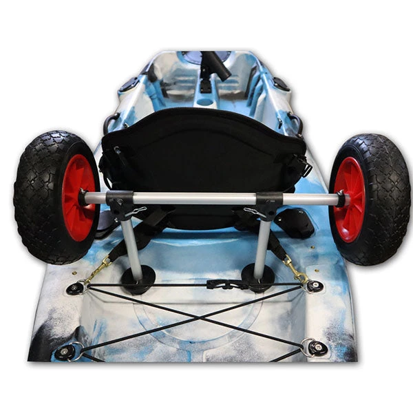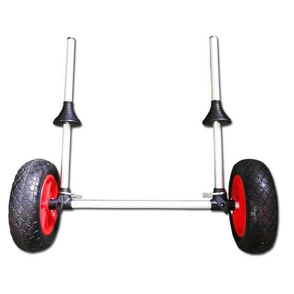 Lightweight, easy to carry, and strong with an aluminum frame, our kayak scupper dolly is well-balanced, adjustable, and durable. Assembly is quick and easy, and all you need to do is attach the wheels at the stainless steel latch rings with a lynchpin, and secure the vertical poles in the joining brackets before you’re ready to mount for a smooth roll down to the lake, river, ocean, inlet, or lagoon.