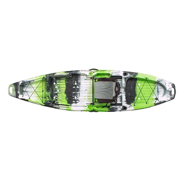 - The open stern storage area offers ample room for crates, bait tanks, and expedition gear within reach of the paddler.