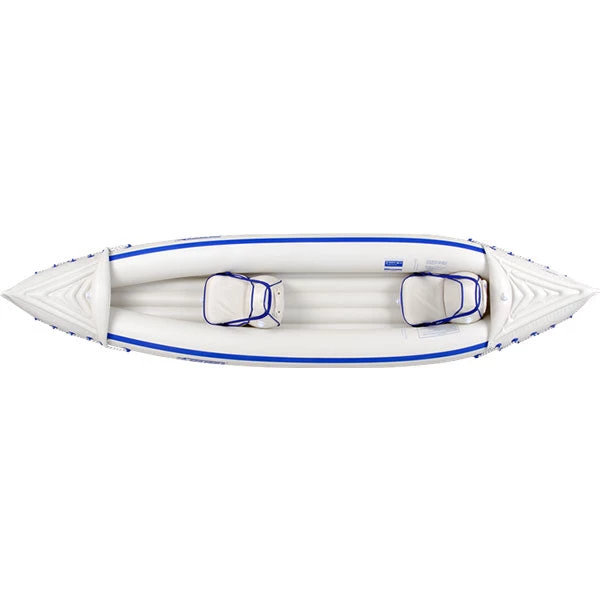 This affordable inflatable Sport Kayak is as lightweight and portable as it gets, yet still remarkably stable and durable. It weighs just 32 lbs. and packs down small enough to fit in the smallest car trunk.