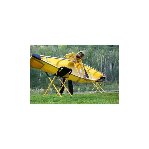 Perfect companion at both the launch site and home! The larger diameter & heavier tubing withstands more rigorous use than the Universal Portable Stand. Stable base at the perfect working height for cleaning, rigging & repair. The sturdy canvas sling features a 6″ drop that cradles the boat, making it easy for one person to manage & rotate!
