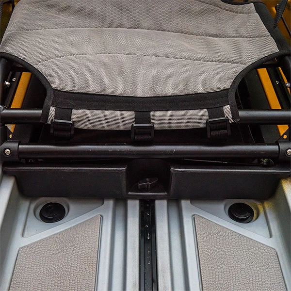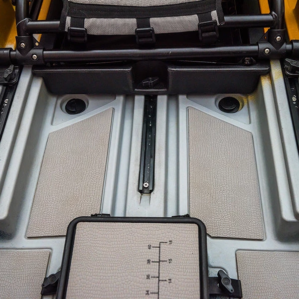 Get all the storage you need throughout the Elite Pro Angler kayak for your fishing gear and other belongings. The stern at the back has a large tank, secured with cross-braced bungee, ideal for safeguarding your equipment. You can store more of your belongings under your aluminum seat or in the storage area inside your kayak by the round lockable hatch at the top of the tank well. You’ll also find a handy toolbox in front of you, ideal for mounting a fish finder and stowing the battery pack inside. Find even more storage beyond the toolbox and by the kayak’s bow.