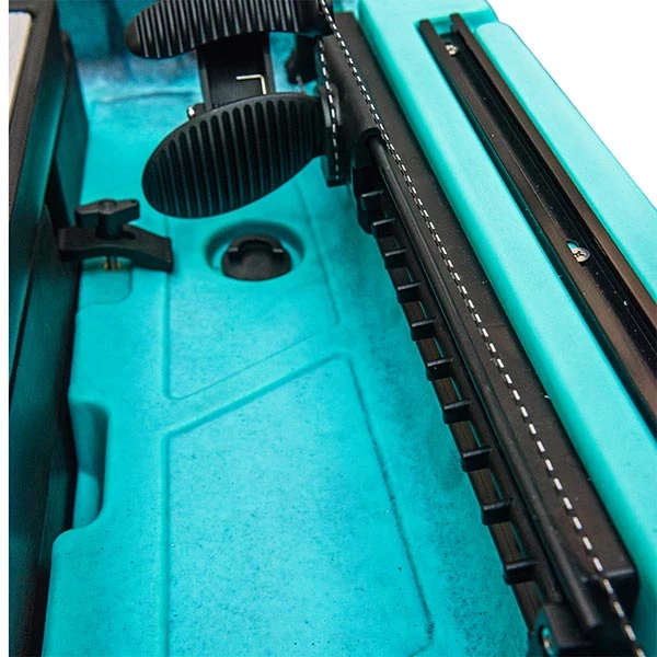 Throughout the deck, we have placed scupper plug points to allow any excess water to drain off the deck’s surface. Whether cruising an estuary or venturing into the deep blue, comfort is essential, especially when spending long hours on the water. For that reason, we have added a raised aluminum mesh seat. Durable and quick to dry, the aluminum seating supports your back and legs so that you can enjoy your paddle more. The Aluminium seat runs along an inserted accessory rail to shift the seating to the perfect position for comfort; when in place, fasten by tightening up the seat rail clips, ensuring that the seat is secure.
