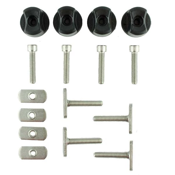 Includes four of each: Convertible Knobs, 1-1/2” MightyBolts, Track Nuts, 1-1/4” Socket Head Cap Screws. All standard 1/4-20 thread. Compatible with YakAttack MightyMount’s, GearTrac, and most other kayak track systems from Scotty Fishing Products, RAM Mounts, and YakGear. For FeelFree Kayaks, 3 Water Kayaks, and Jonny Boats you will need an adapter to be compatible.
