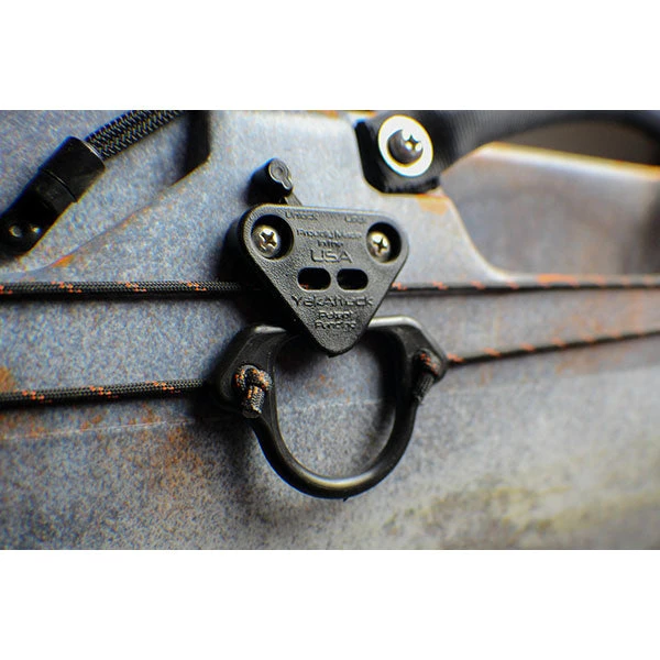The first anchor trolley designed specifically for the job, the YakAttack LeverLoc™ Anchor Trolley features a LeverLoc™ line clamp, which locks your trolley line in place with a simple “flip of a switch” motion. Keeping the trolley lines in line is the PadHook, a simple but clever design that combines the functionality of both a pad-eye and a hook, keeping even the tightest trolley lines in place on the side of the kayak, not over your gunwale. When not in use, the easy-knot trolley ring snaps into the base of the LeverLoc™, quietly secured until deployed.
