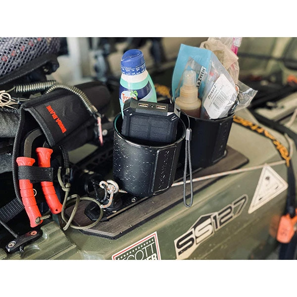 The YakAttack MultiMount Cup Holder quickly and easily attaches to most kayak track systems. Designed for maximum versatility, the MultiMount Cup Holder accepts anything from stainless steel tumblers to Nalgene® Bottles to 12 oz cans and water bottles.
